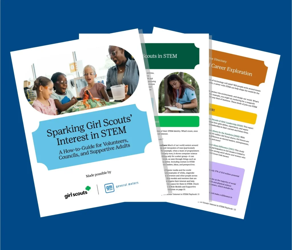 Home > Resources Tools Girl Scouts New STEM Playbook April 30, 2024 The world of STEM is filled with endless opportunities to make a difference. From exploring computer coding and space exploration to building robots and solutions to problems such as climate change, girls are using STEM as a tool to change our world. And you can help them make it all possible! Girl Scouts’ new STEM Playbook is designed for anyone looking to encourage a love of STEM in girls of all ages. Whether you’re involved with Girl Scouts or simply a supportive adult, the new STEM Playbook offers ideas, guidance, and access to resources and tools to grow girls’ interest and skills in the field. Download the new STEM Playbook and discover new ideas to help girls build the future with STEM. Download the Playbook