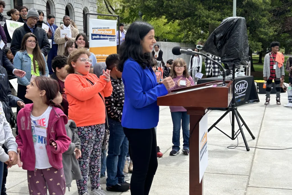 Home > Resources News & Announcements Pennsylvania Statewide Afterschool Youth Development Network holds an advocacy day at the state Capitol May 5, 2023 Flight Crew Member, Neha, keynoted advocacy day at the Pennsylvania State Capitol. The Pennsylvania Statewide Afterschool Youth Development Network held a rally for Pennsylvania afterschool programs, complete with youth keynotes, as well as remarks from State Reps. Elizabeth Fiedler, D-Phila., and Doyle Heffley, R-Carbon, co-chairs of the PA House Afterschool Caucus. Read More
